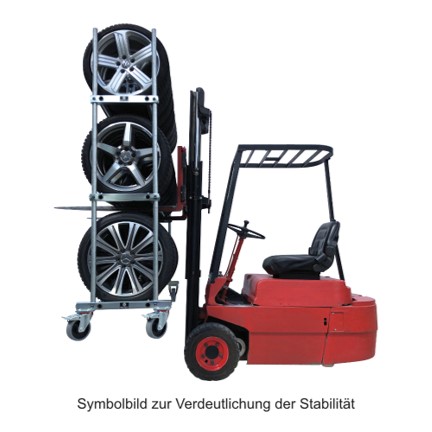 Die Reifenwagen-Breite von 2100 mm (Nutzbreite: 1890 mm) ist optimal für den Transport von 2 Satz Reifen je Ebene. Somit können Sie 4 Felgen nach links und 4 Felgen nach rechts ausrichten, wodurch ein Umkippen der Reifen ausgeschlossen wird. - Hersteller: Bertele Metalltechnik GmbH